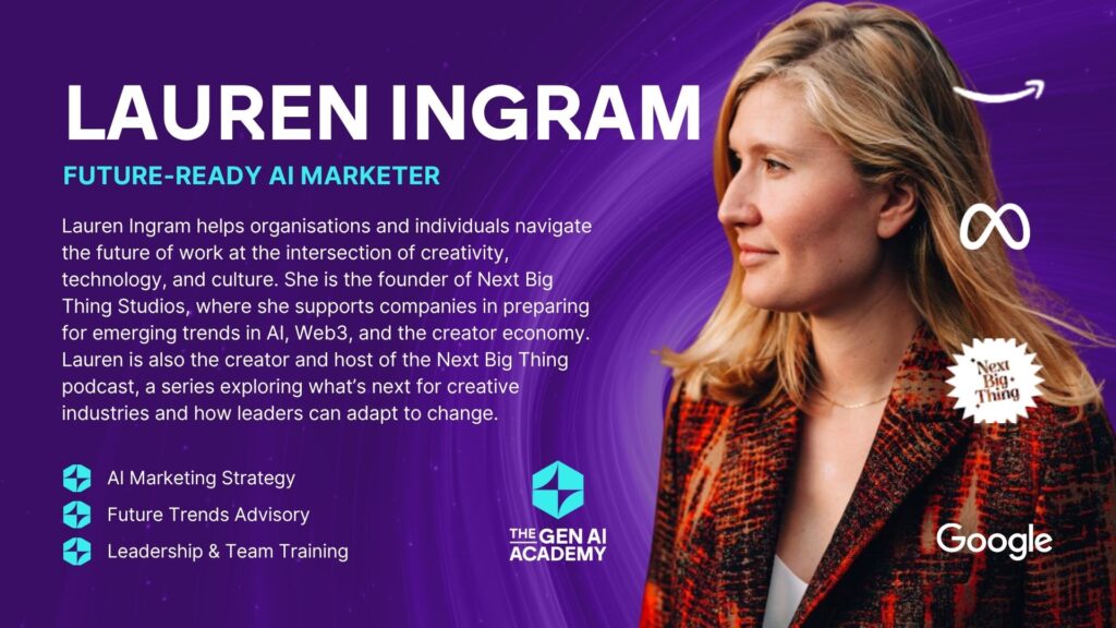 As the founder of Next Big Thing Studios, Lauren helps organisations and creative teams anticipate what’s coming next — from the rise of generative AI to the evolution of the creator economy. She also hosts The Next Big Thing podcast, where she explores how emerging technologies are reshaping work, marketing, and culture through conversations with global leaders and innovators.